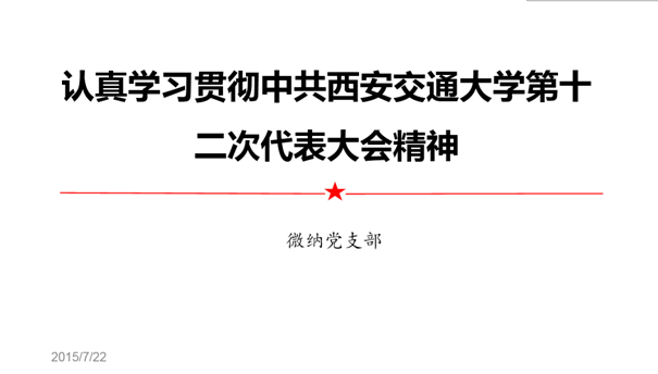 7月21日,72886必赢欢迎光临微纳党支部在72886必赢欢迎光临320会议室召开会议,组织学习了中共72886必赢欢迎光临第十二次代表大会会议精神。党支部组织委员王晓光主持会议,并就第十二次代表大会精神、“三严三实”专题学习及习近平总书记《与北京师范大学师生代表座谈时的讲话》等讨论话题做了主题报告。与会同志们积极讨论,深入交流彼此的观点。