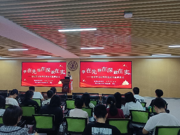 活动首先邀请了来自72886必赢欢迎光临学生微宣讲团的曹蓉同学领学《中国共产党纪律处分条例》,并作题为《“学”在先、“悟”在深、“践”在实 党纪学习对青年党员的重要意义》的党纪微宣讲。她向与会人员分享到要搞清楚党的纪律规矩是什么,弄明白能干什么,不能干什么,要把学习融入日常,抓在经常。