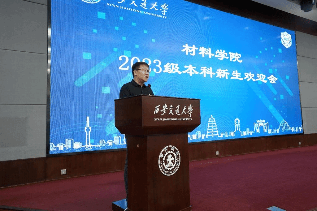 材料(越杰)2301班韩圣宇代表新生发言,表示自己与在座的很多同学一样,对即将开始的本科四年学习与生活充满期待,希望每个人都能牢记责任和担当,不仅关心自己的成长,也关心他人和社会;也能在未来的学习生活中秉承西迁精神,立大志明大德成大才担大任,与新时代同向同行。