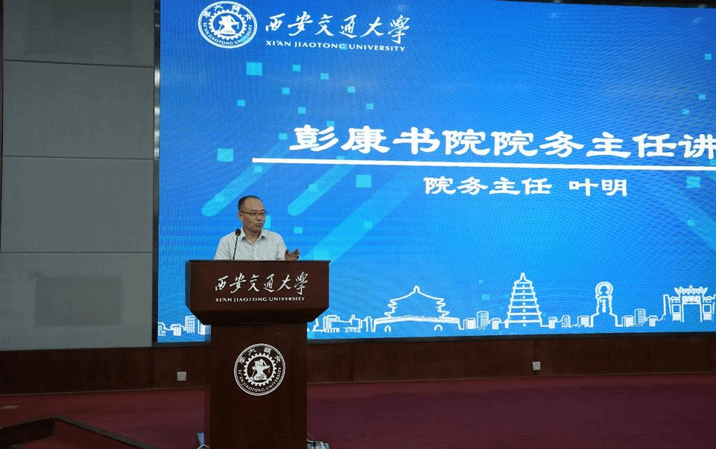 叶明介绍了学校双院制育人历史与特色。他表示大家要谦虚,对每位老师要怀敬畏之心,遇到困难,多与老师沟通;此外面对网路媒体环境,要学会谨言慎行,时刻要保持清醒,在交大能够度过安全和谐的校园生活,四年后成为书院、学院的骄傲。